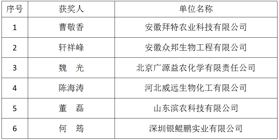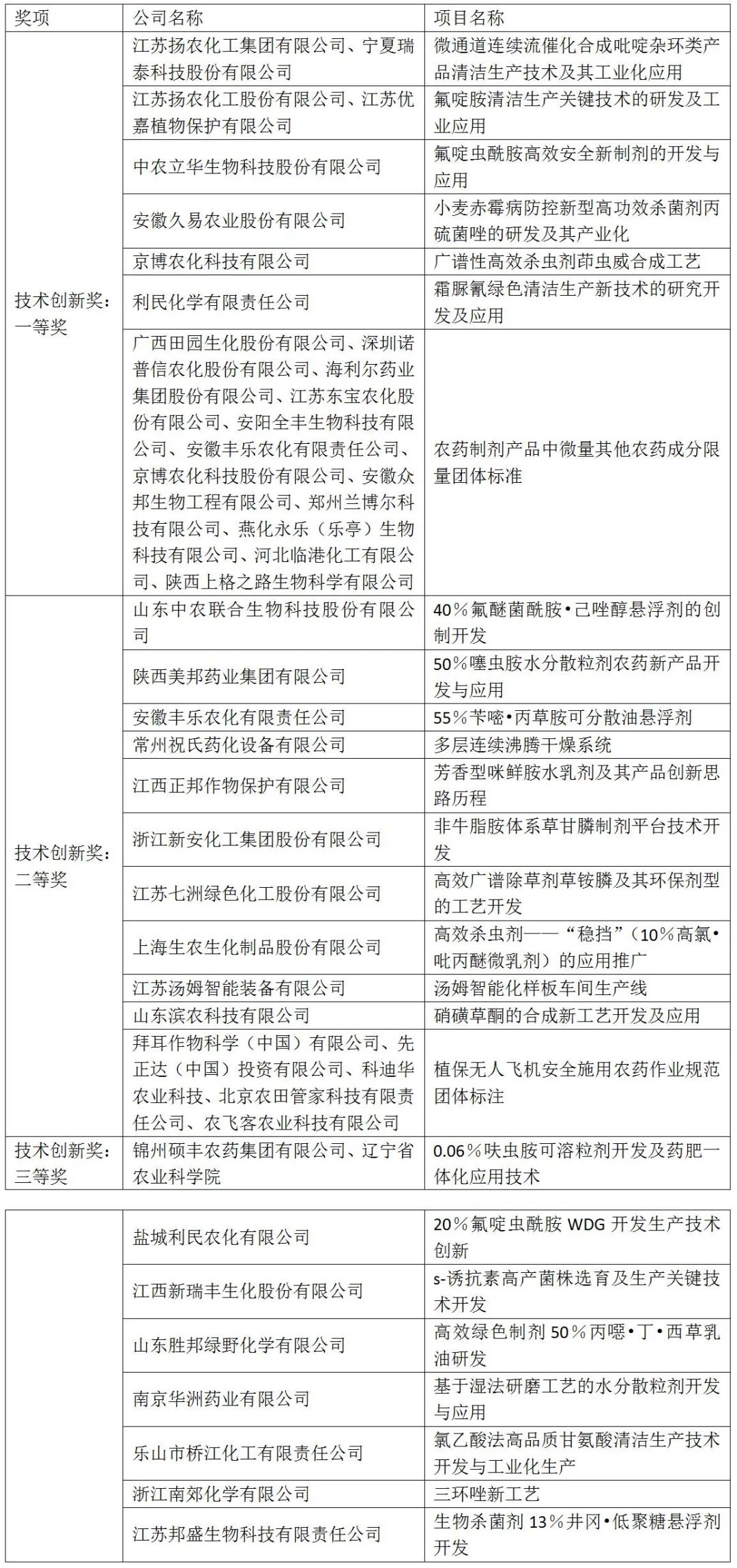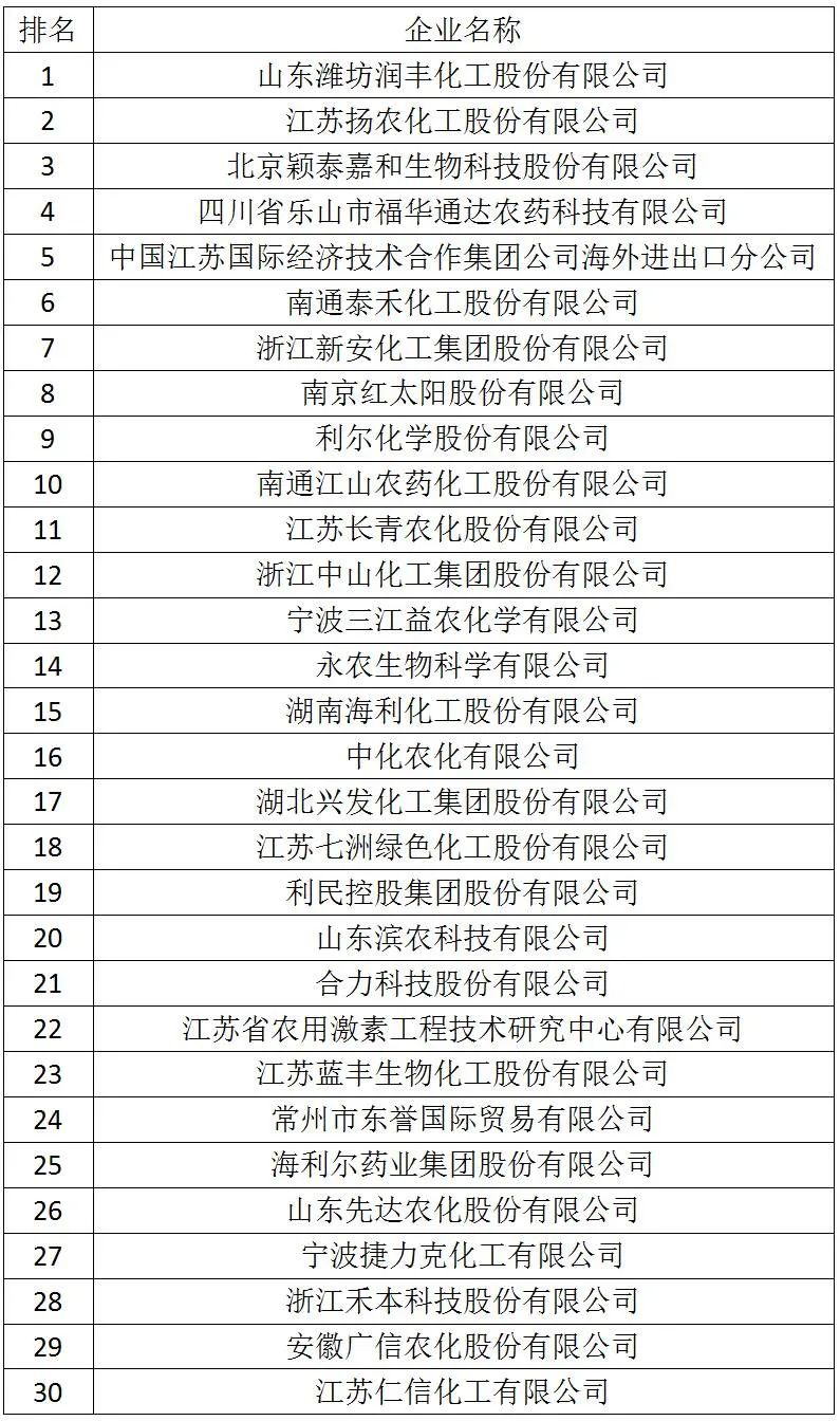 会议发布了2019年中国农药出口额三十强名单(表1)、中国农药行业获得HSE认证的企业名单(表2)、技术创新奖获奖名单(表3)和市场贡献奖获奖名单(表4)。